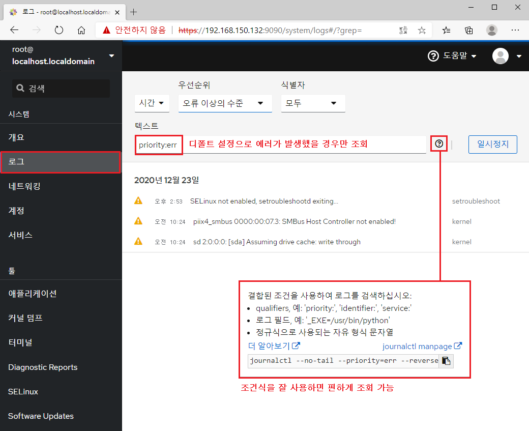 ※ 정확히는 journalctl를 이용한 systemd 로그 정보를 불러옵니다.