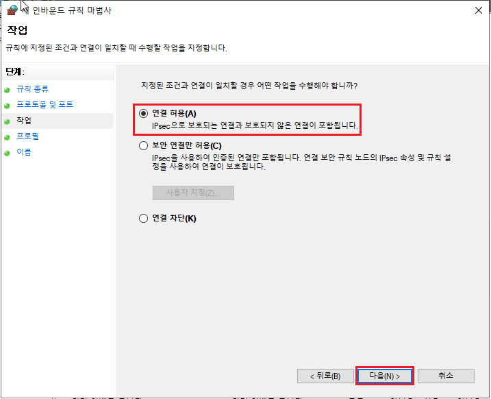 ※ 좀 더 보안을 신경 쓰신다면 원격 IP 주소에서만 접속할 수 있도록 추가하는 게 좋습니다.