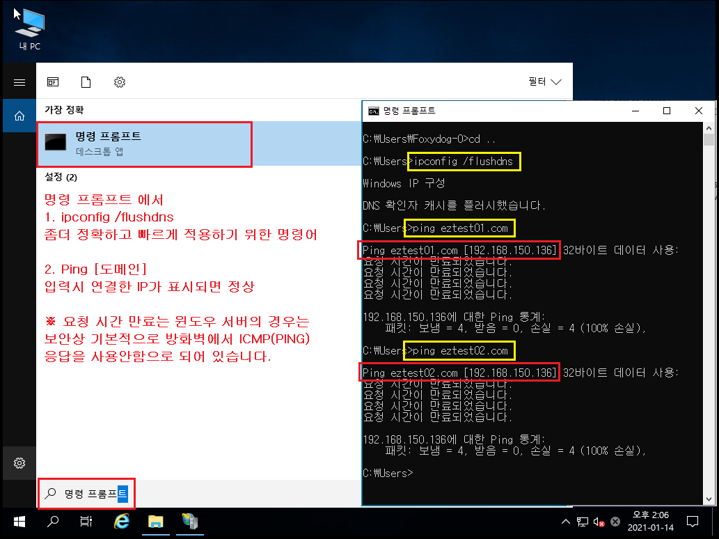 4-2 ipconfig DNS 캐시 초기화 및 PING 테스트