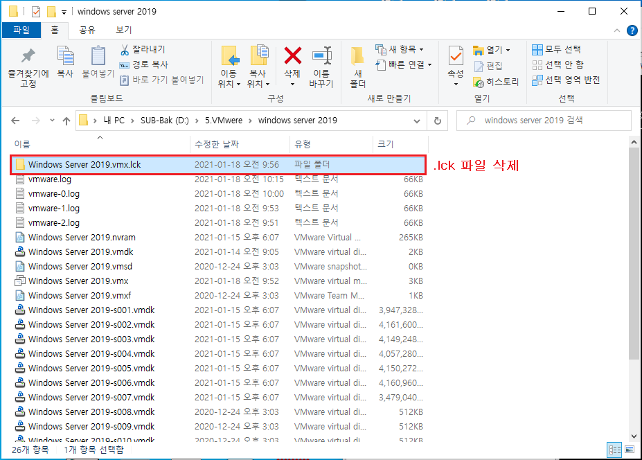VMware의 가상 머신 하드 디스크는 디렉토리 경로에 있는 파일을 보호하기 위해 OS가동할 경우 임시로 .lck 또는