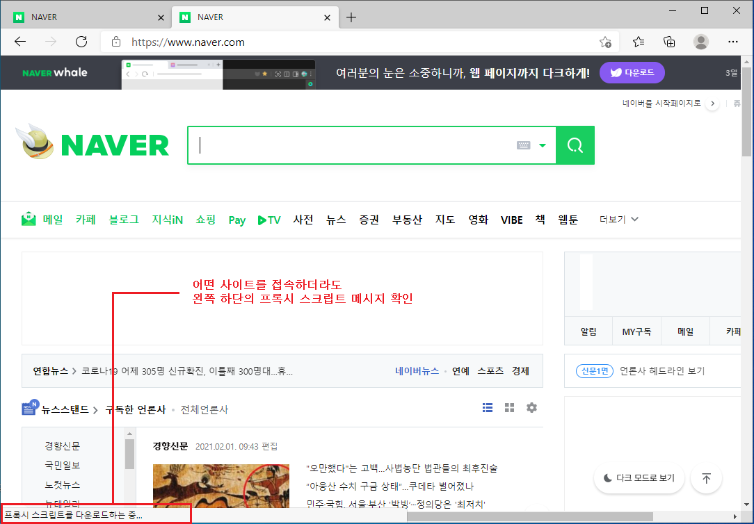 마이크로소프트 엣지(Edge) 연결 지연 문제 - 프록시(Proxy)