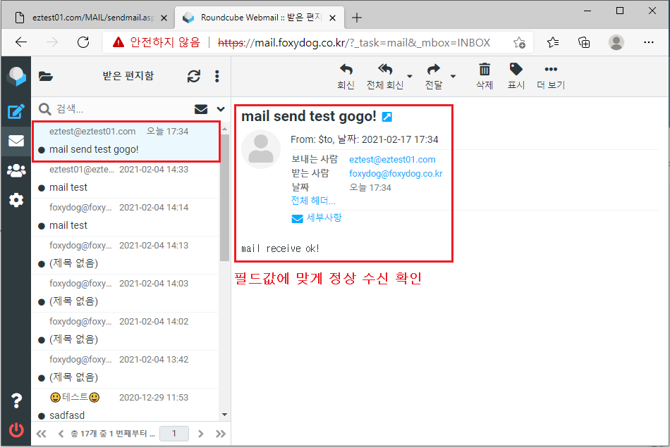 STEP06 → 웹페이지에서 발송 소스 실행 - 2차시도(정상)