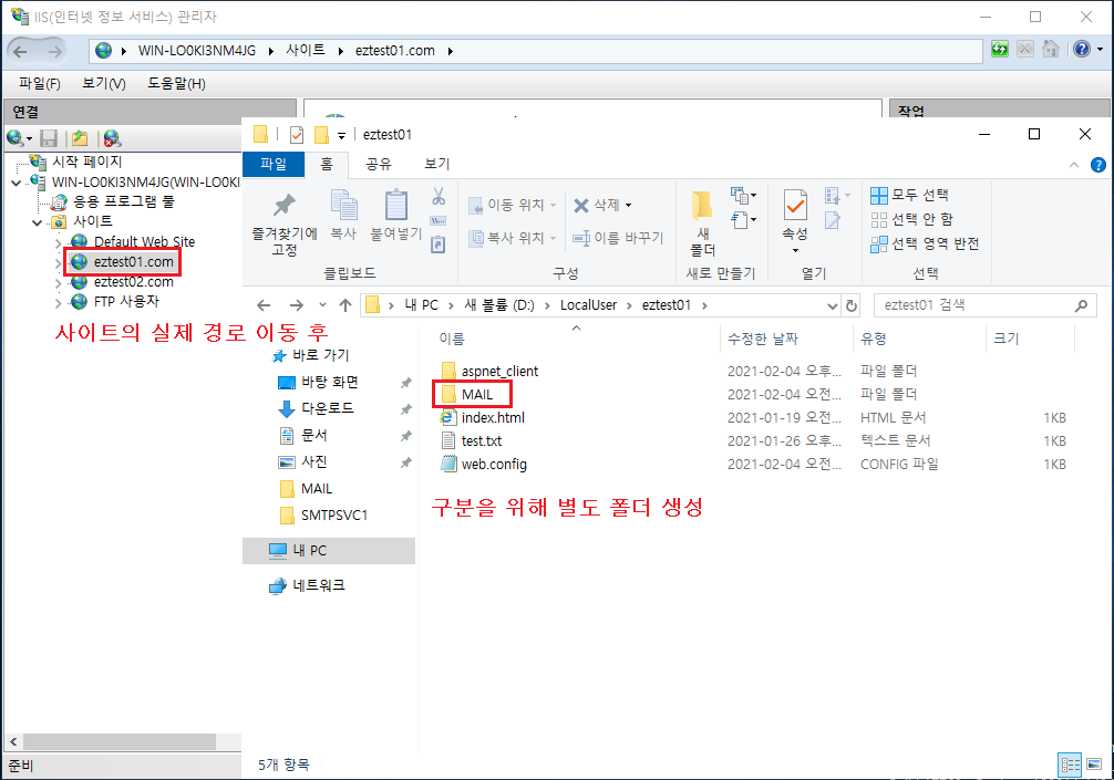 2-1 해당 사이트의 실제 경로에서 구분을 위해 별도의 폴더(MAIL) 생성