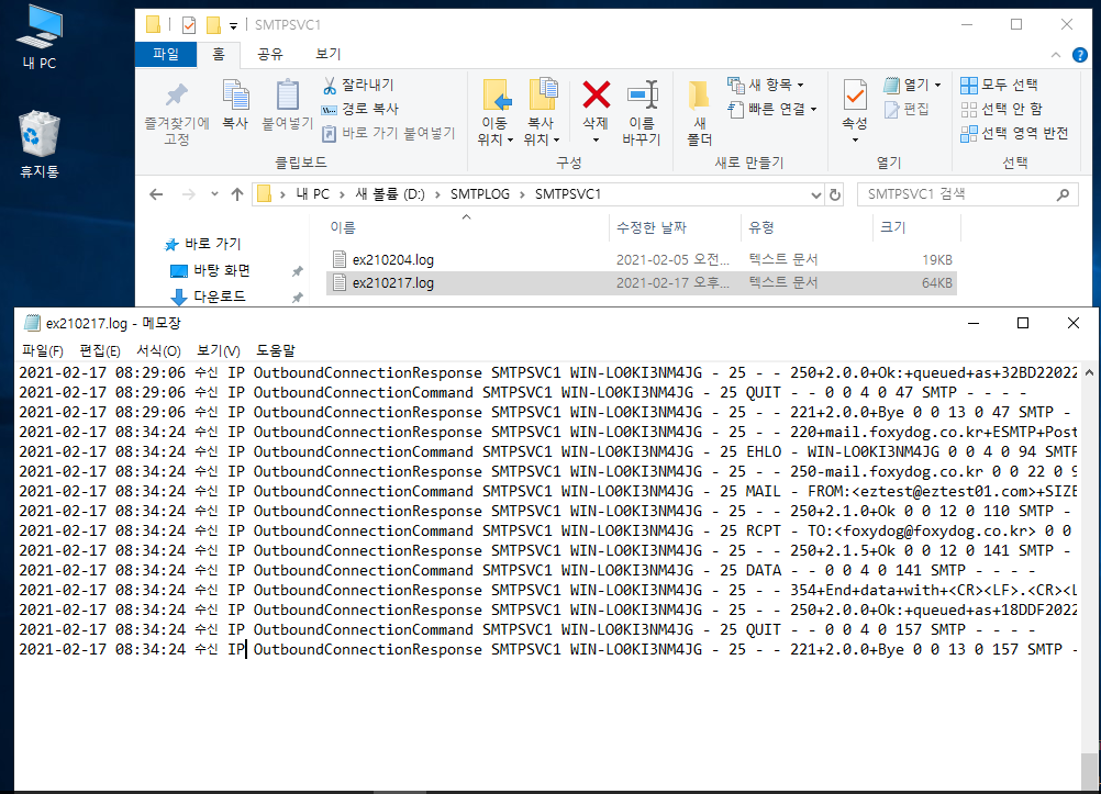 ※ 로컬 내부 서버를 통해 발송된 SMTP 로그 확인