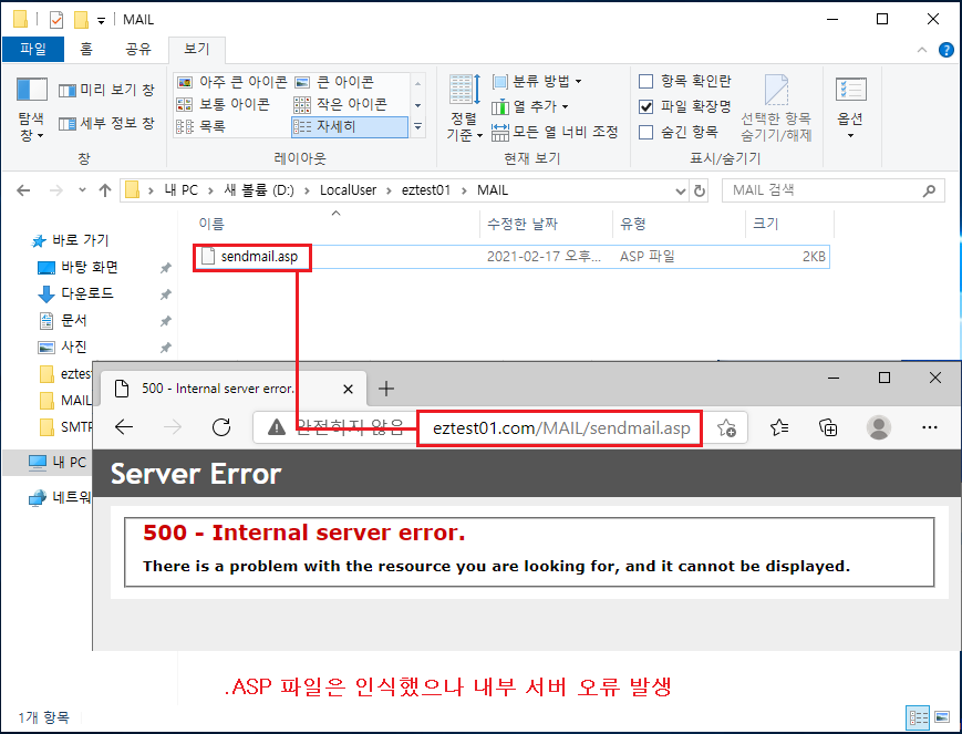 http://eztest01.com/MAIL/sendmail.asp 페이지를 를 실행했으나 다음과 같은 오류가 발생했습니다.