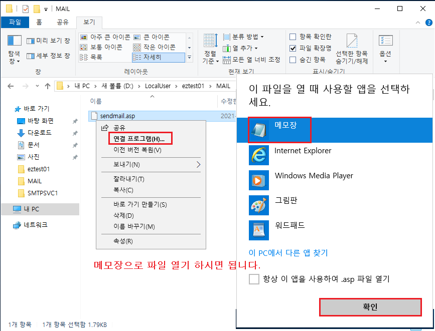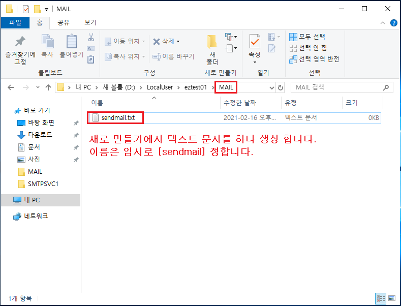 2-2 새로 만들기 ▷ 텍스트 문서 ▶ sendmail.txt 파일 생성