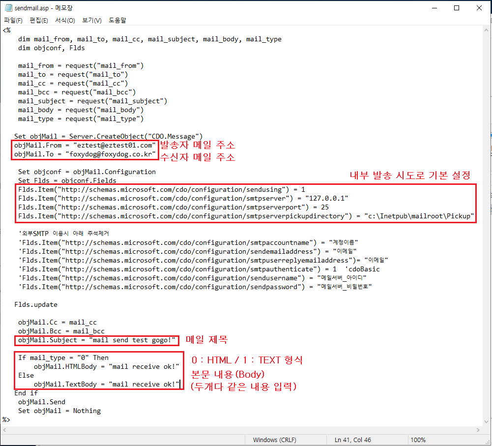 ※ 진행하기전, ASP 메일 발송용 소스코드 참고
