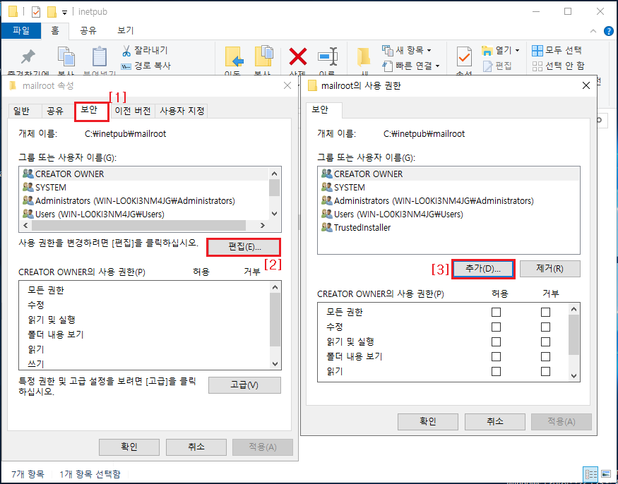 ② 보안 탭 ▷ 편집 ▶ 추가