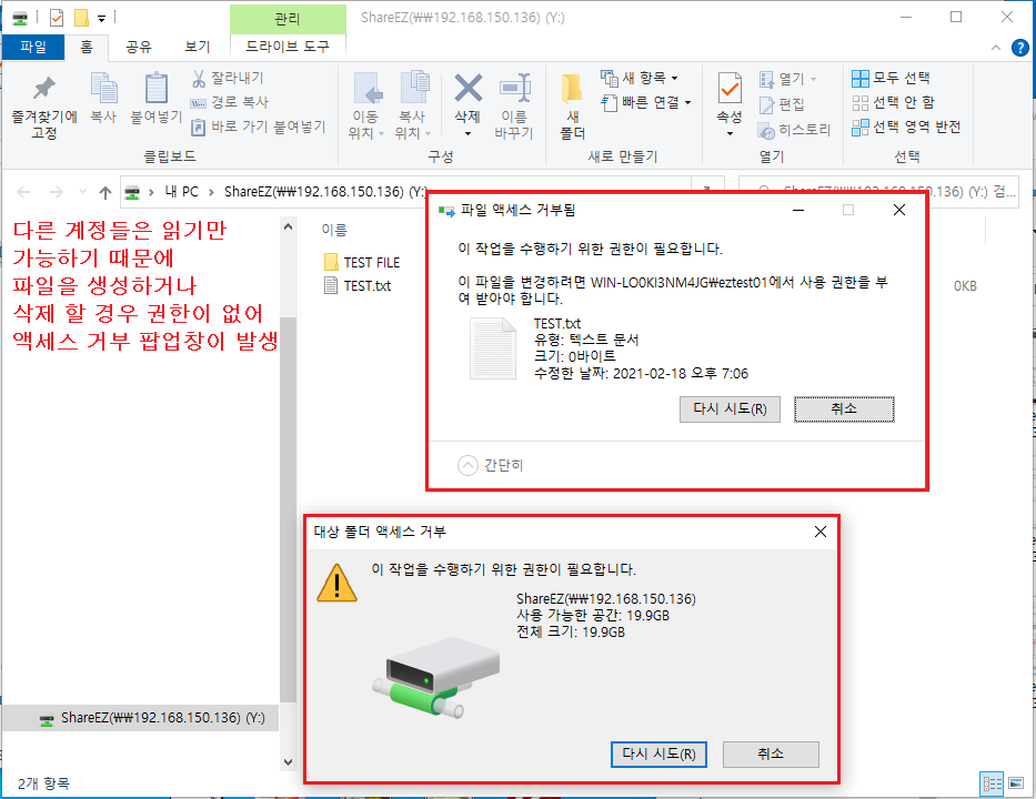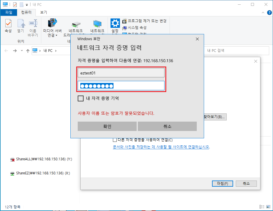 5-1 동일한 방법으로 ShareEZ 공유 폴더에 [eztest01] 계정 접속하기