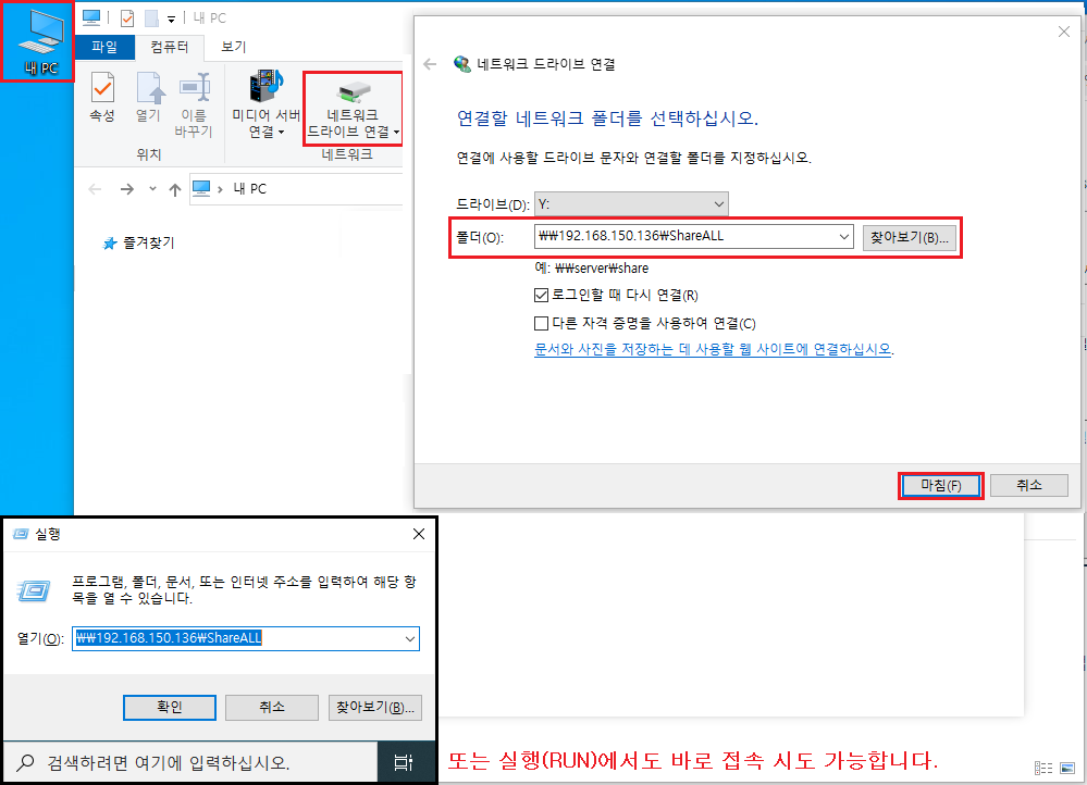 STEP03 → 클라이언트 PC(Windows 10)에서 네트워크 파일 공유 접속하기