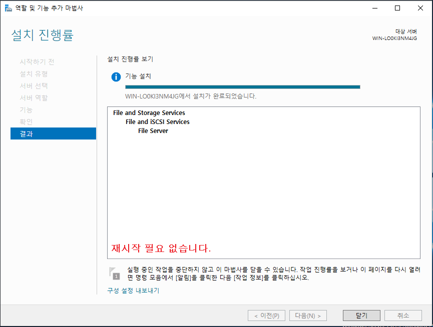 ※ 서버역활 ▷ File and Storage Services ▷ File and iSCSl Services ▶ File Server(체크)