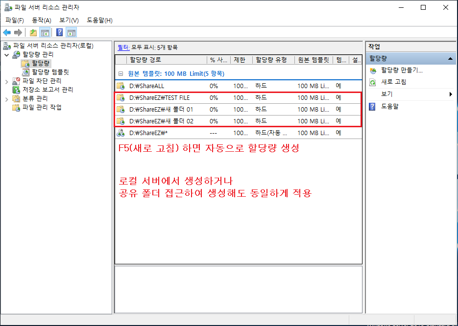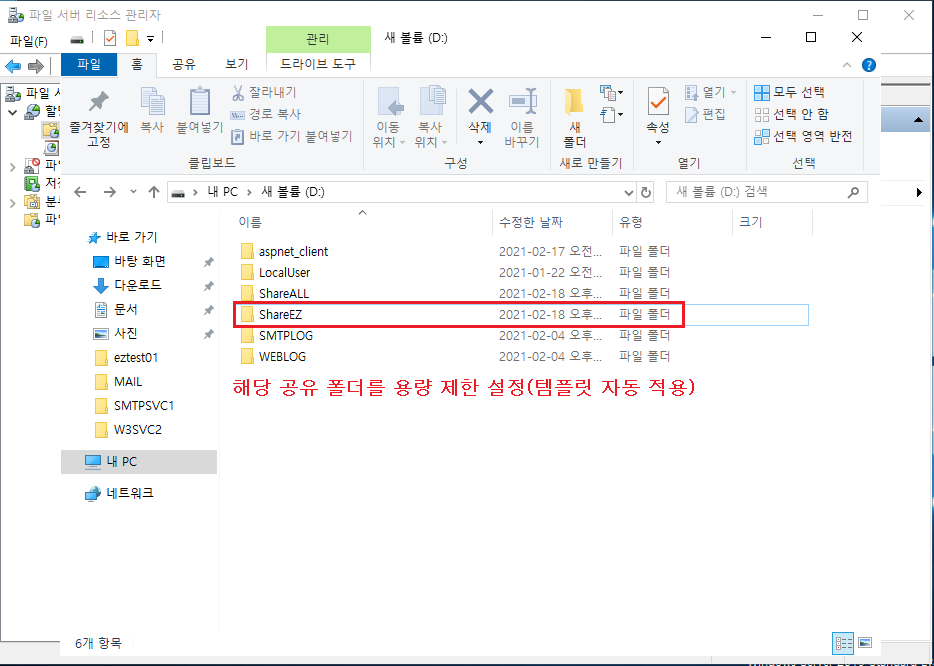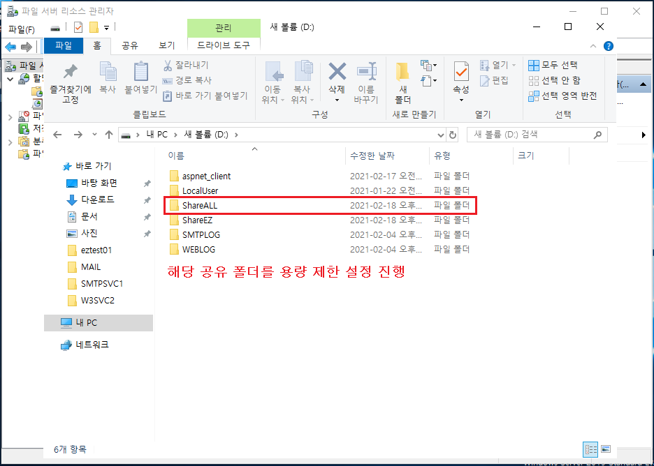 5-1 ShareEZ 이라는 공유 폴더를 예시로 용량 제한 설정 진행