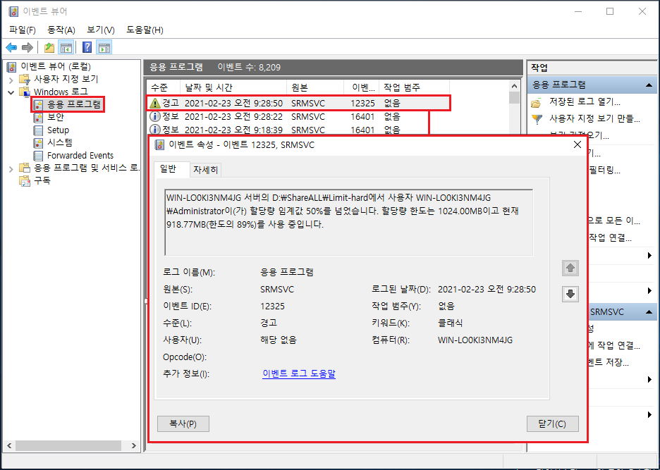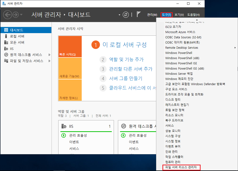 Windows Server 2019 - 파일 서버 리소스 관리자
