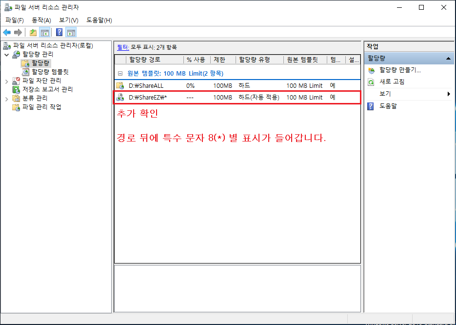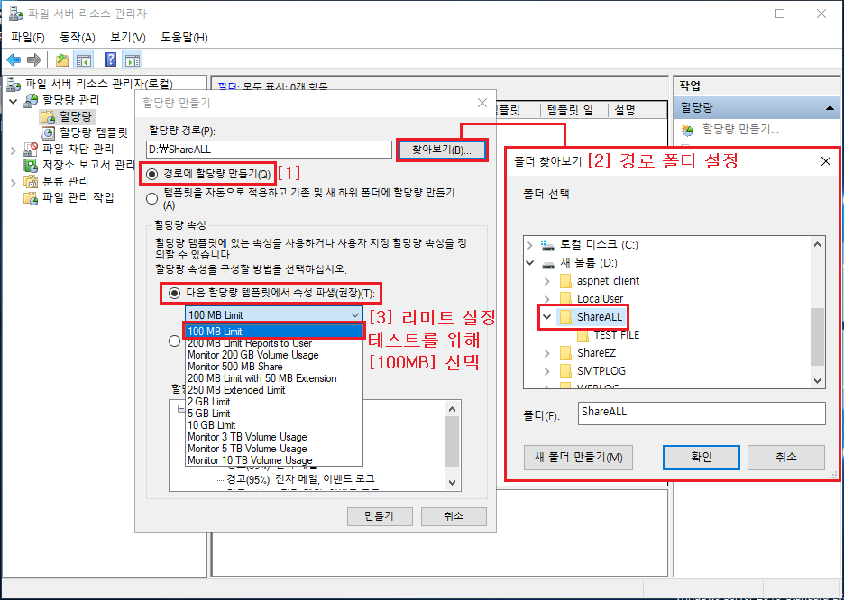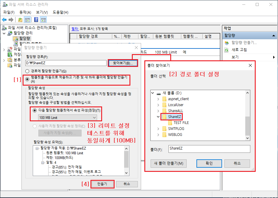 ② 할당량 경로 : 찾아보기에서 ShareALL 폴더 선택 후 확인