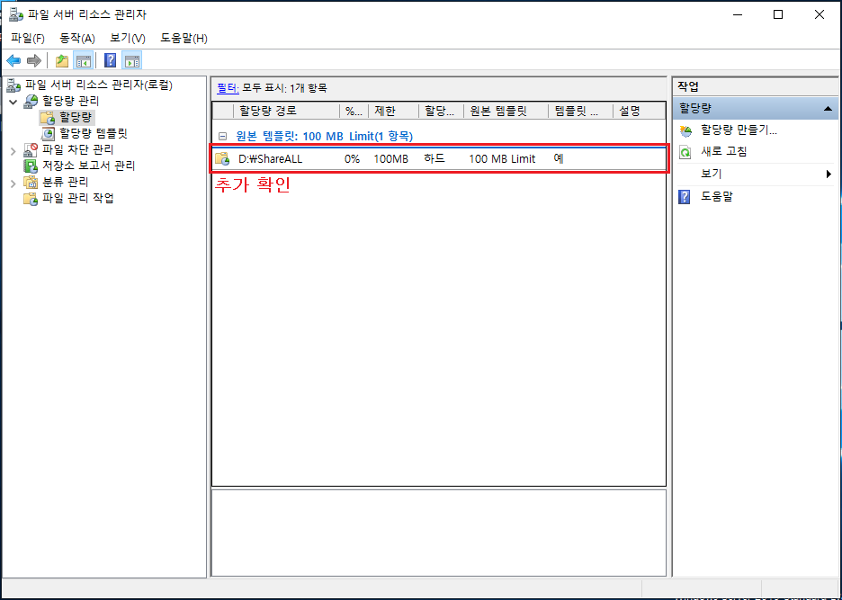 3-1 ShareALL이라는 공유 폴더를 예시로 용량 제한 설정 진행