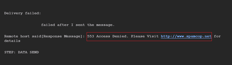 | ▷ 553 Access Denied. Please Visit http://www.spamcop.net for details |