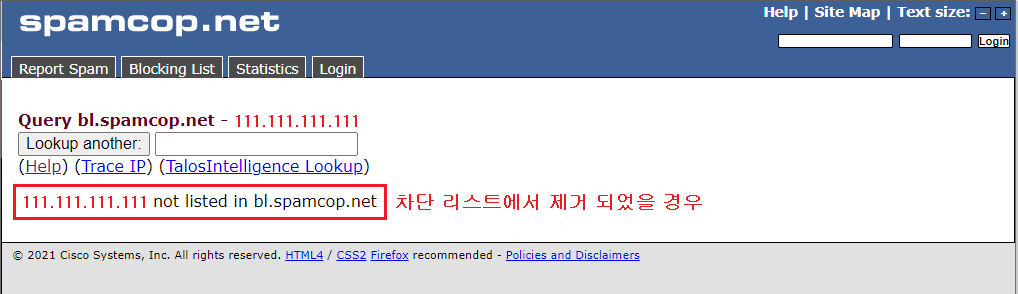 ① 리턴 메시지에 포함되어 있는 URL 주소를 클릭한다. 없다면 직접 RBL 사이트에 접속한다.