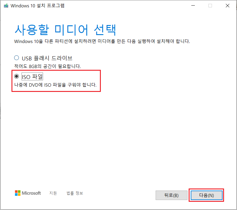 ※ 사용할 미디어 선택에서 [ISO 파일] 선택 후 다음으로 넘어갑니다.