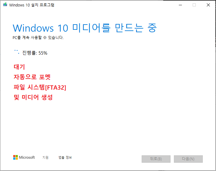 ※ 해당 부분은 건너뛰어도 됩니다.(참고만 하시기 바랍니다.) USB가 파일 시스템이 [NTFS]로 되어 있어도 도구를 이용해 Windows 설치 미디어 프로그램에서 자동으로 포맷 후 [FAT32]으로 설정을 합니다. 단, USB 안에 중요한 데이터가 있다면 별도 백업 후 진행하시기 바랍니다.