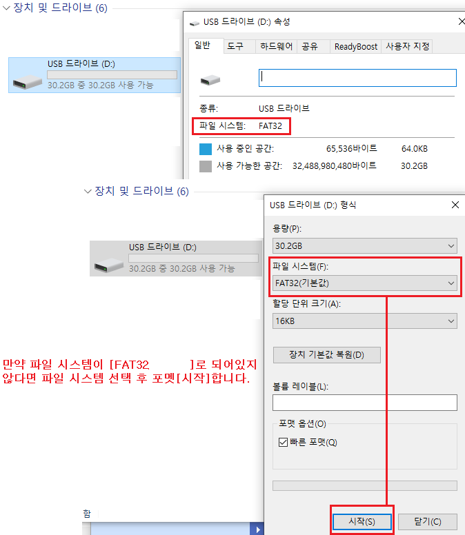 STEP02 → USB 플래시 드라이브 파일 시스템을 [FAT32]로 포맷