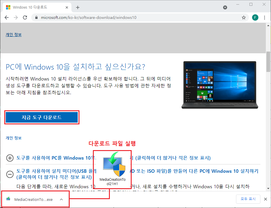 STEP03 → 마이크로소프트 공식 홈페이지 도구 다운로드 및 실행