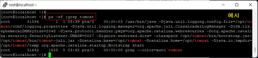 [root@localhost ~]# ps -ef |grep tomcat (프로세스 실행 확인)