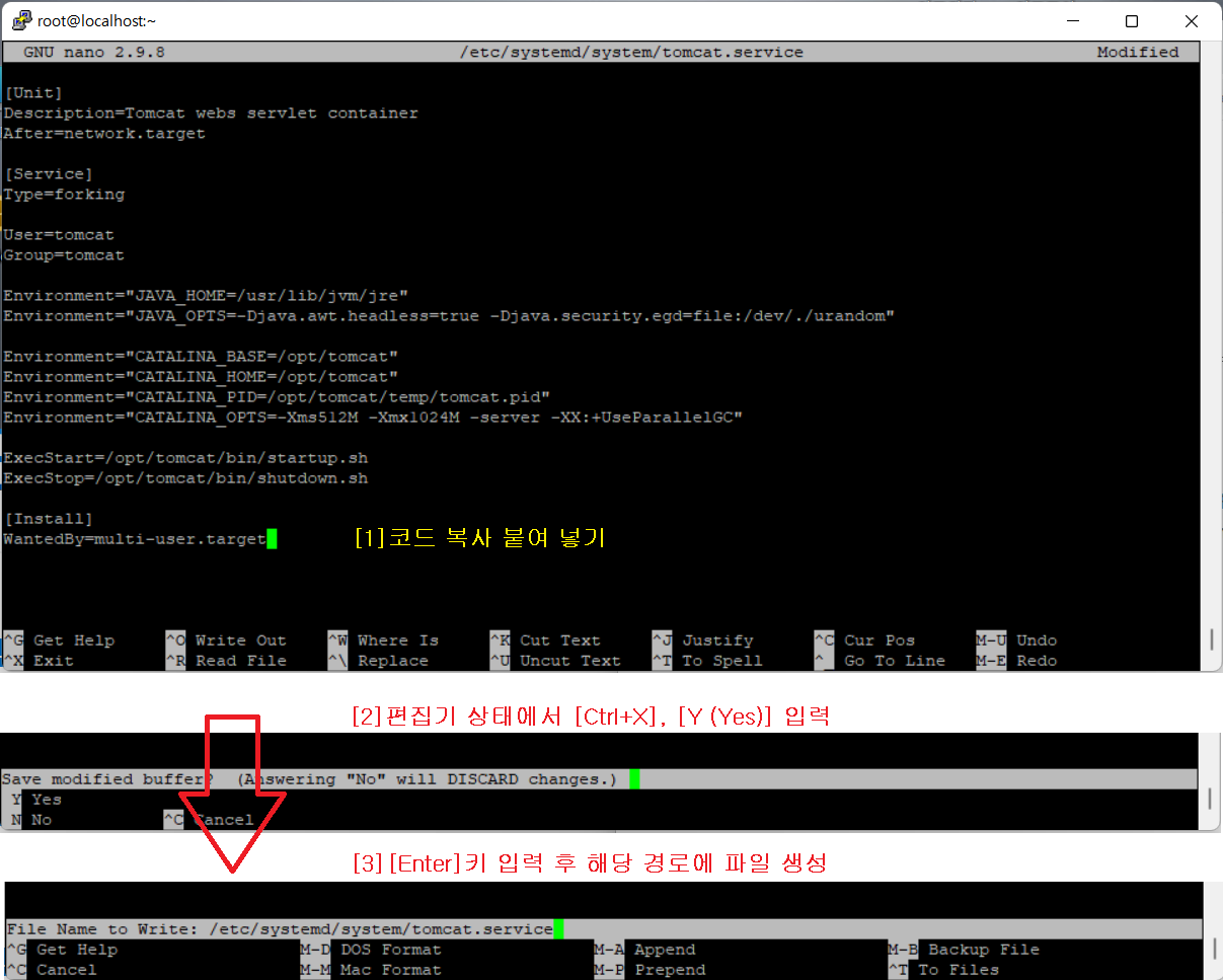 [root@localhost ~]# nano /etc/systemd/system/tomcat.service