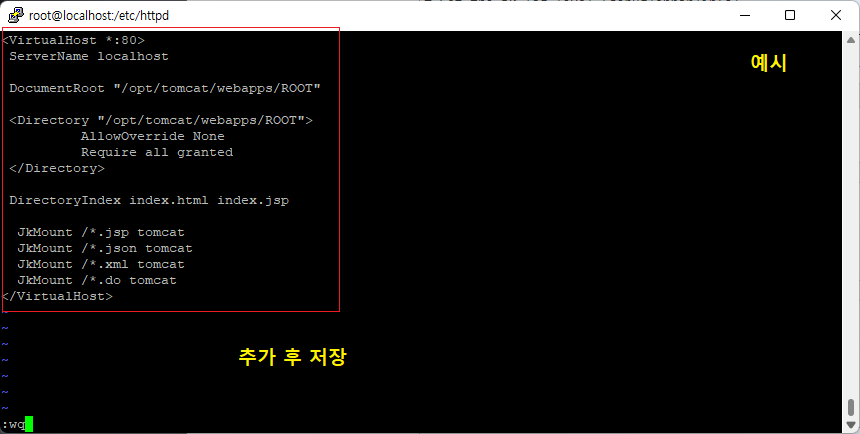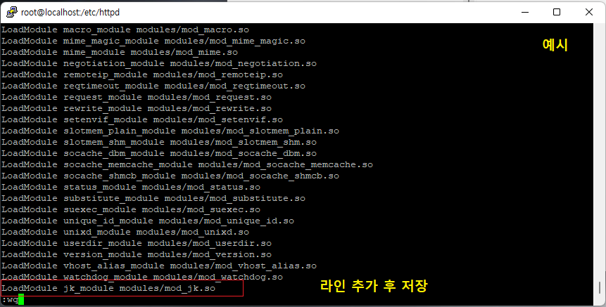 LoadModule jk_module modules/mod_jk.so (하단 추가 후 저장)