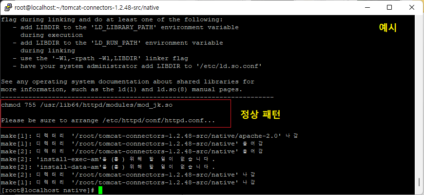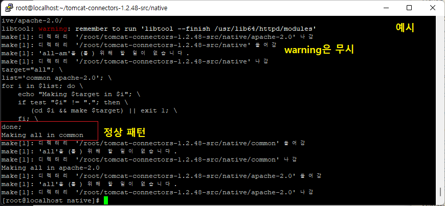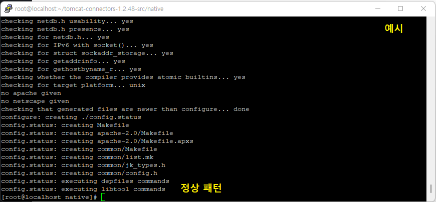[root@localhost ~]# cd tomcat-connectors-1.2.48-src/native (경로 이동)