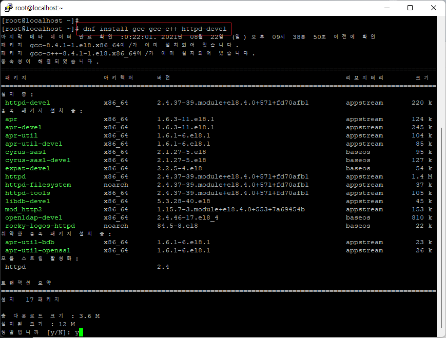 [root@localhost ~]# dnf install gcc gcc-c++ httpd-devel