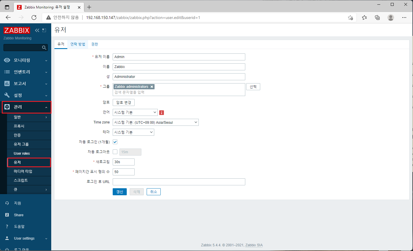 10-1 본인 PC에서 다시 http://192.168.150.147/zabbix 접속