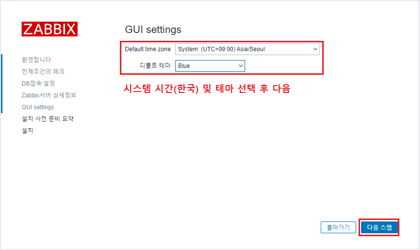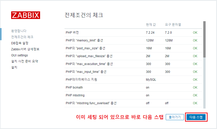 STEP09 → Zabbix Web 설치 페이지 접속 [http://서버IP 또는 호스트네임/zabbix]