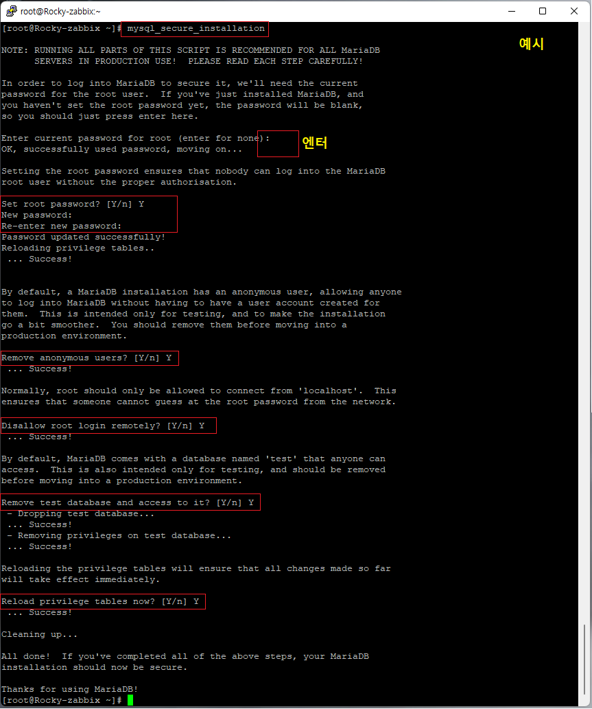 [root@Rocky-zabbix ~]# mysql_secure_installation