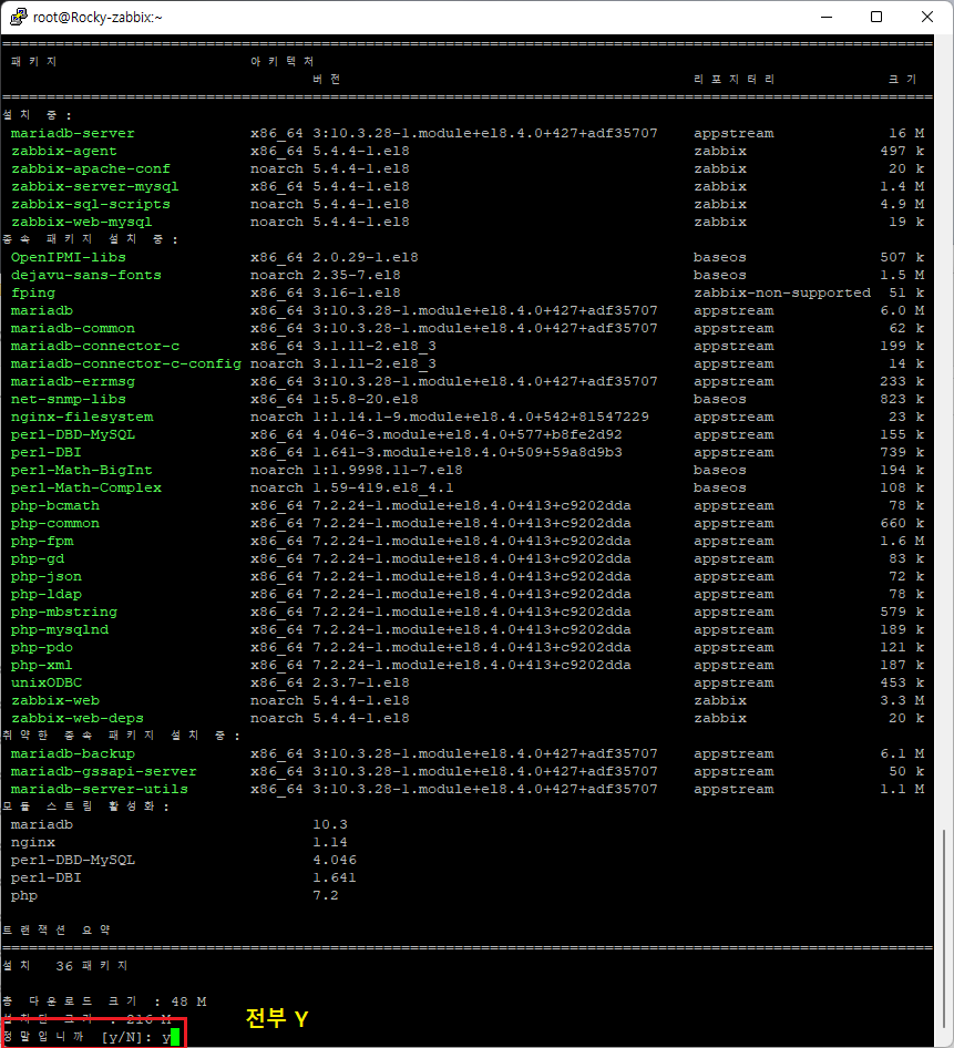 [root@Rocky-zabbix ~]# dnf update (기본 설치 패키지 업데이트)