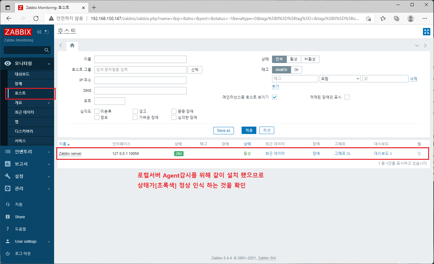 10-3 Agent 연결 확인[모니터링▷호스트]