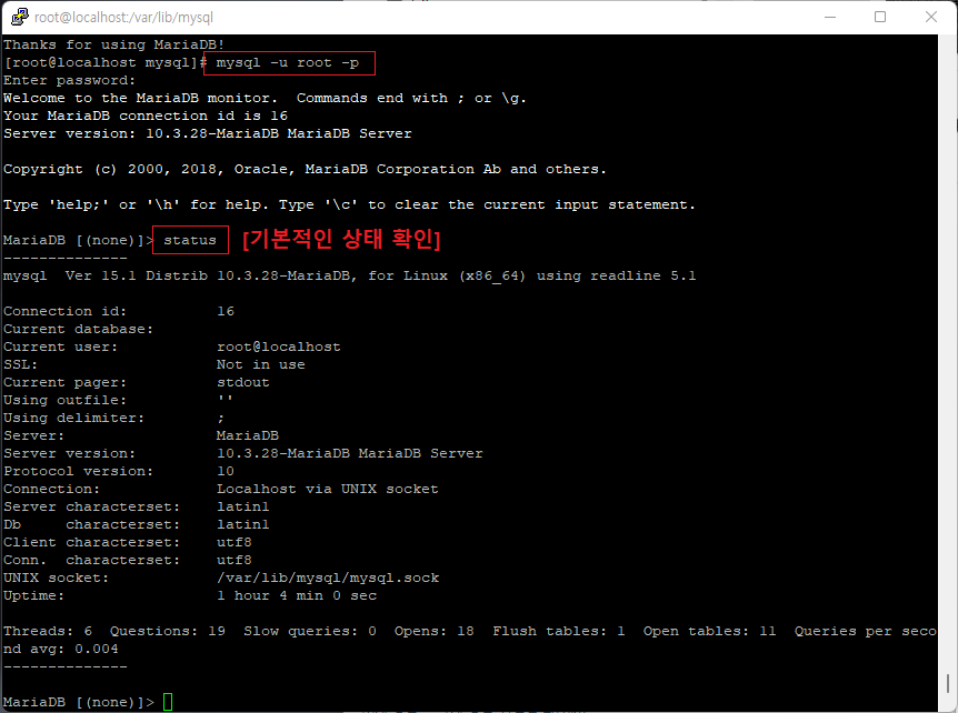 mysql Ver 15.1 Distrib 10.3.28-MariaDB, for Linux (x86_64) using readline 5.1