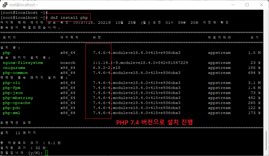 [root@localhost ~]# dnf remove php [7.4 제거]