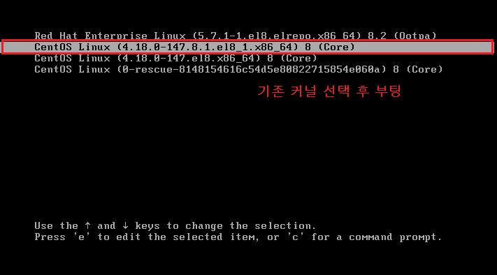 시스템 Reboot 후 기존 커널 선택 부팅하기
