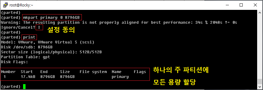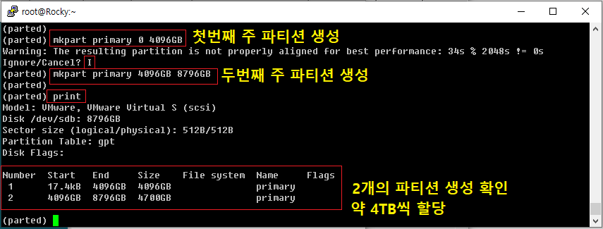 (parted) mkpart primary 4096GB 8796GB [두번째 주 파티션]
