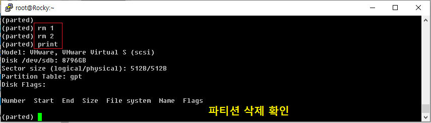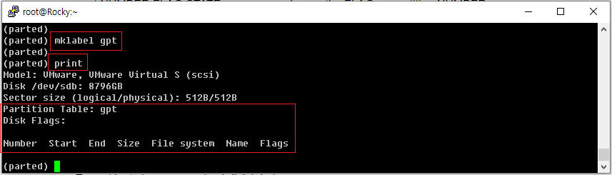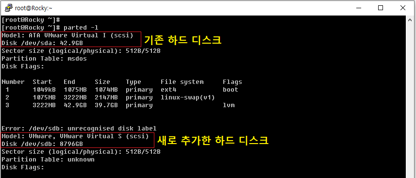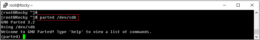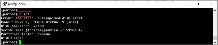 ② Parted 이용해 새로 추가한 하드 디스크를 입력