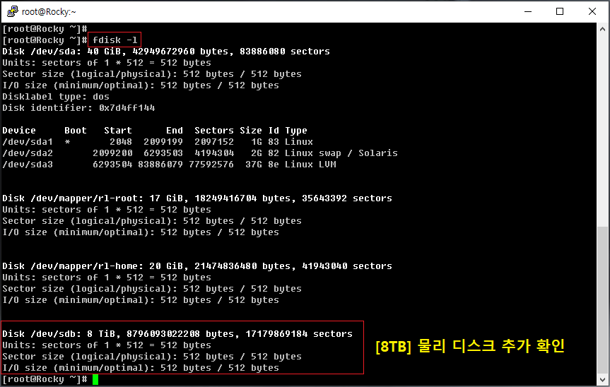 Disk /dev/sdb: 8796GB [디스크 추가 확인]