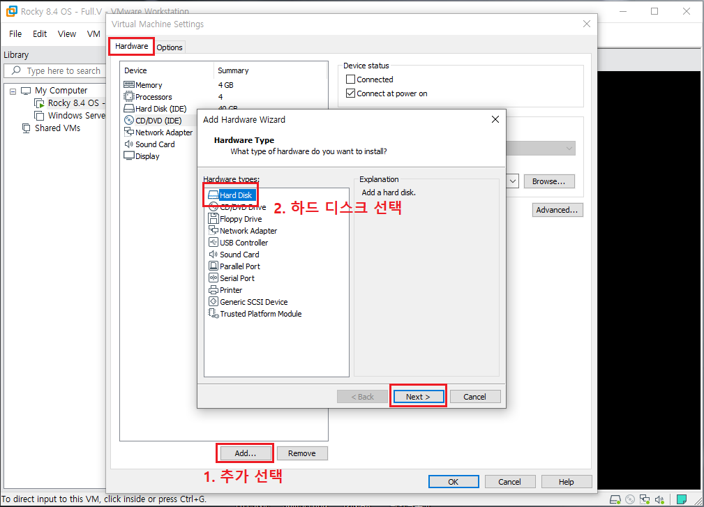 □ 진행하기 전 먼저 고용량의 물리 디스크를 추가합니다.