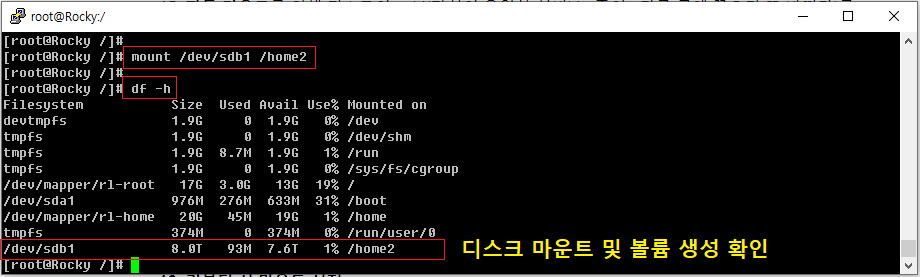 [root@Rocky ~]# mount /dev/sdb1 /home2