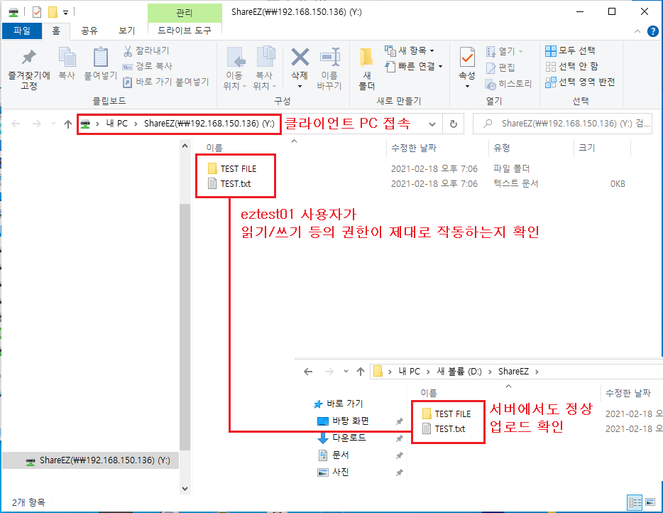 5-1 동일한 방법으로 ShareEZ 공유 폴더에 [eztest01] 계정 접속하기
